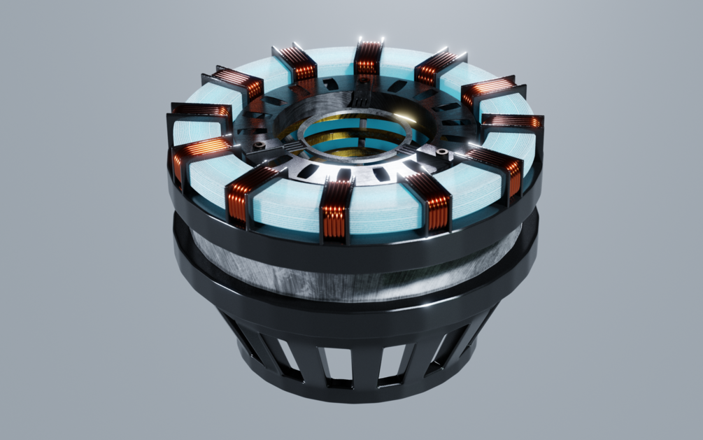 Early iteration of the Iron Man Arc Reactor, similar to what you see in Iron Man 1 and 2 before Tony Stark created a new element. This is a high poly model. The OBJ file has the model in one piece, the Blender file has all the parts separated as each object.